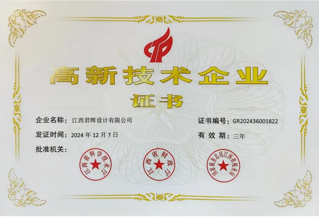 近日,江西省高新技术企业认定管理工作办公室发布了高新技术企业认定名单,江西君晖设计有限公司凭借在科技创新领域的卓越表现与突出成就,成功入选江西省高新技术企业,这标志着君晖公司在技术创新、研发投入及成果转化等方面均达到省内行业领先水平,正式迈入省级高新技术企业行列。