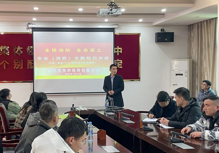 冬季火灾高发,为全面贯彻“全民消防、生命至上”的消防理念,进一步提升职工消防安全意识和自防自救能力,南昌县城投集团水投公司组织开展“全民消防 生命至上”安全(消防)专题知识讲座,江西省消安安全服务公司主任讲师梁五一现场授课,水投公司全体职工参加。