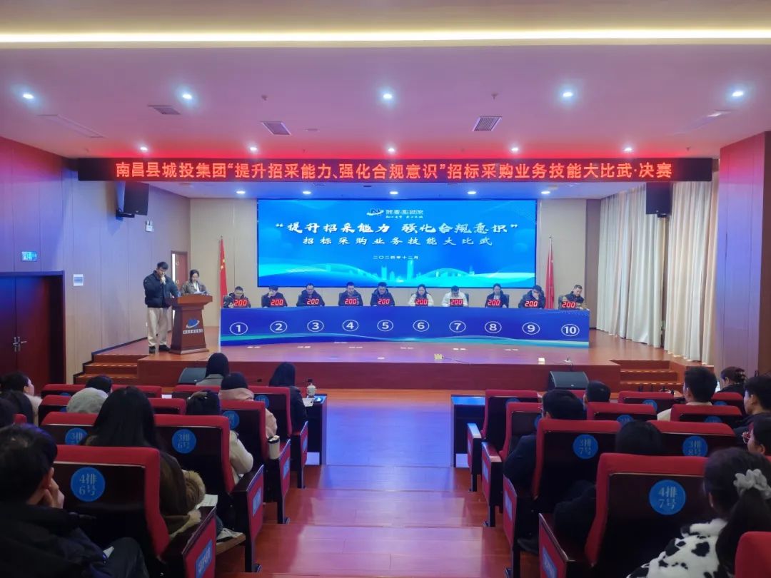 为深入贯彻落实习近平新时代中国特色社会主义思想,大力发展新质生产力,全面提升集团招标采购工作规范化、精细化管理水平,加快集团专业人才队伍建设,12月2日至12月19日期间,南昌县城投集团组织开展了“提升招采能力、强化合规意识”招标采购业务技能大比武活动。