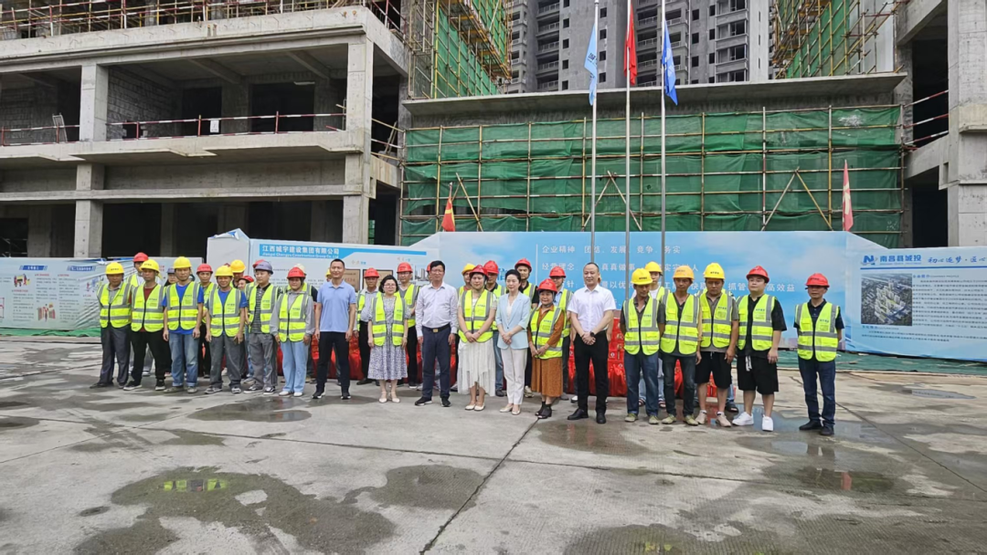 5月7日下午,市总工会副主席张小芳带队走进南昌县雄溪二期一批安置房项目施工现场,开展走访慰问活动,为奋战在建设一线的工人们送去工会组织的关怀与温暖。县总工会副主席徐和春,集团党委书记、董事长黄晓瓶,集团党委委员、纪委书记、监察专员、监事长黄翔全程陪同。
